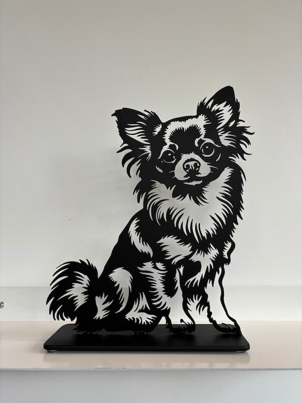 Cette statuette en acier finement découpée d’un chihuahua au charme irrésistible. Son style moderne et contrasté en fait un élément déco idéal pour ajouter une note douce et élégante à votre intérieur. Un petit objet qui attire l’œil et apporte une ambiance chaleureuse .