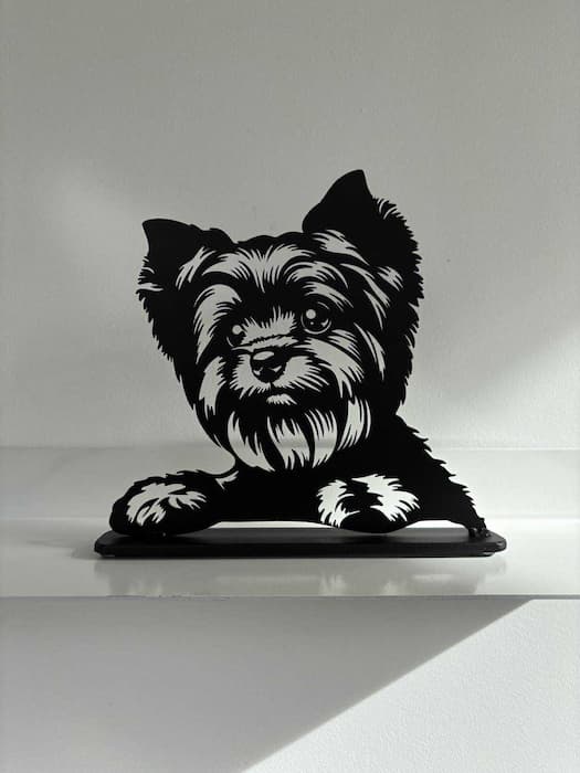 Cette déco en acier  finement découpée d’un Yorshire  au charme irrésistible. Son style moderne et contrasté en fait un élément déco idéal pour ajouter une note douce et élégante à votre intérieur. Un petit objet qui attire l’œil et apporte une ambiance chaleureuse !